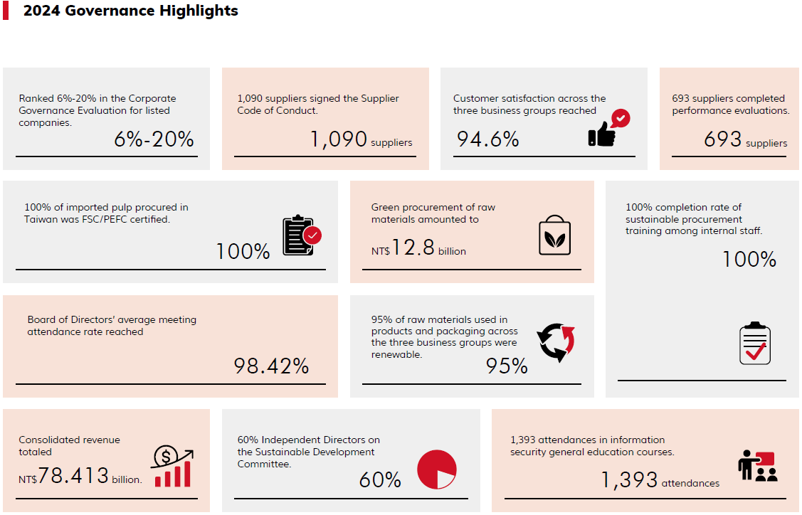 YFY’s governance unit and senior management participate in annual ESG education, training, and forums. The aim is to integrate ESG into daily operations, enhance sustainability awareness and knowledge among all employees, and cultivate a culture of sustainability. Please refer to P.25 and P.35 of the annual report for more details. Additionally, the ESG office has organized various courses, including carbon inventory training for group subsidiaries, ESG capital expenditure briefings, and supply chain ESG internal training, to further deepen employees' sustainability awareness in their business activities.