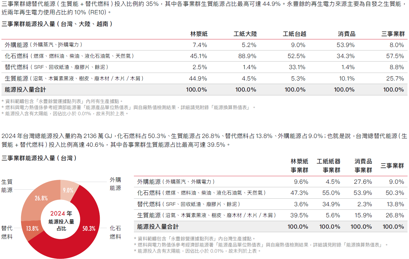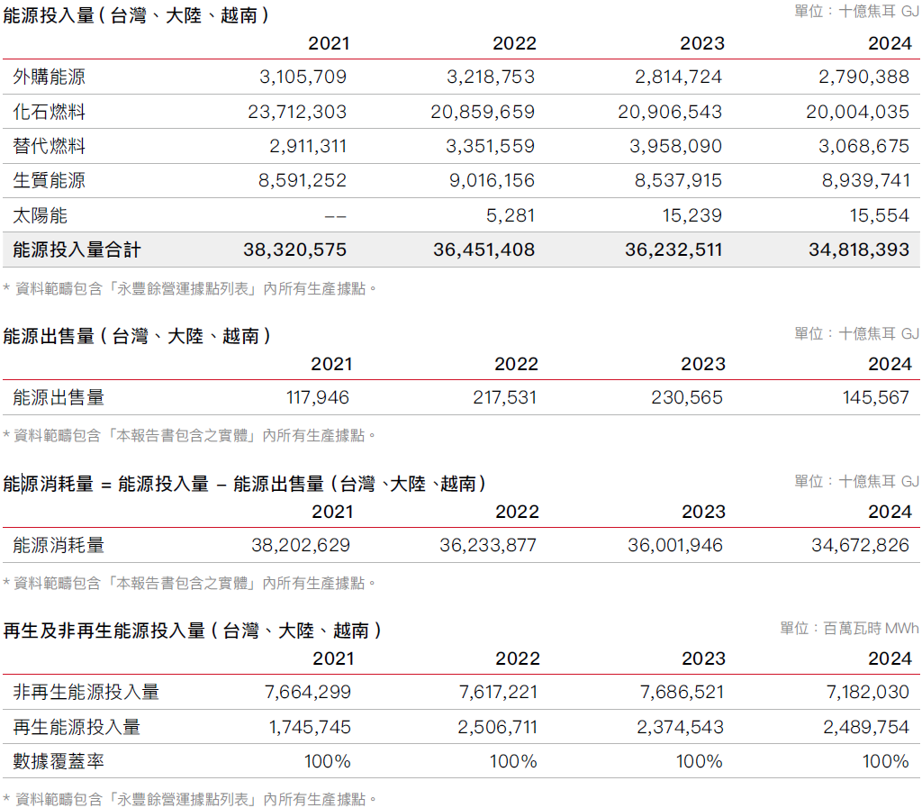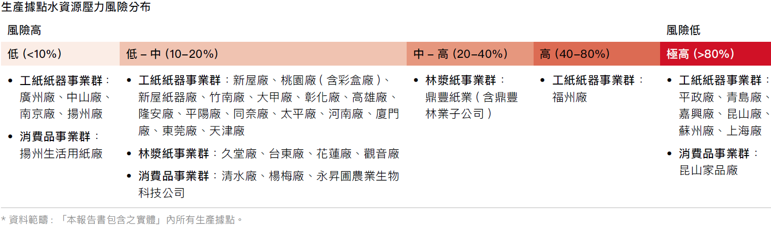 * 資料範疇包含三大事業群(林漿紙事業群、消費品事業群、工紙紙器事業群)所有於台灣、越南、大陸的35處生產據點。