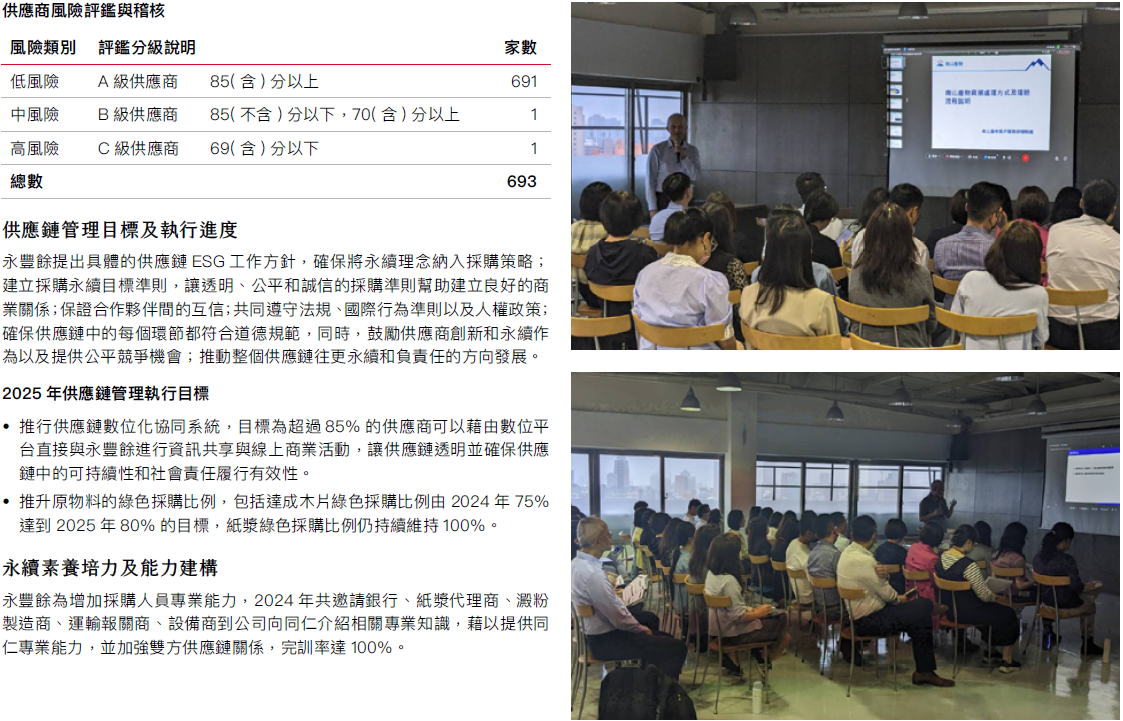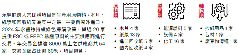 永豐餘透過上下游價值鏈,例如回收體系、回收商的串連,讓這些紙產品經使用後,不斷地回到工業用紙的製程,延長了紙的生命週期。永豐餘所使用的原物料如木漿及回收紙,均屬可再生物料。只要紙的生命週期越長,就越能延緩這些二氧化碳返回大氣,形成完整搖籃至搖籃的固碳產業鏈。